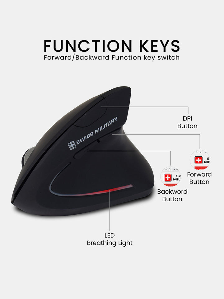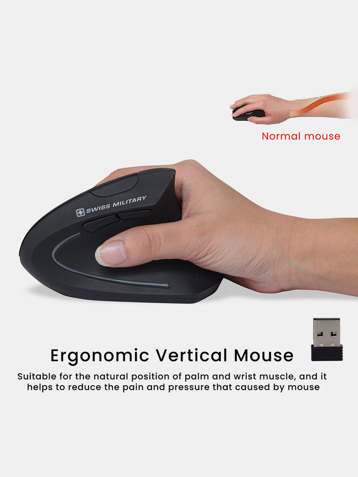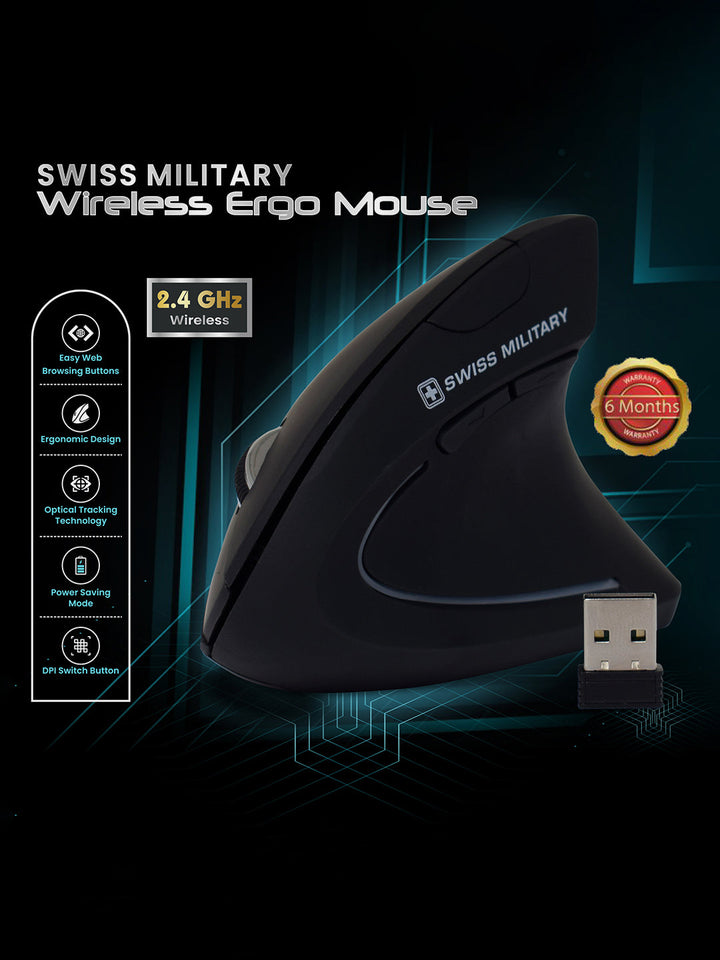 Experience Comfort And Control Like Never Before With The Swiss Military WM-01 Wireless Ergo Mouse – A Smartly Engineered Peripheral Designed For Long Hours Of Use. With Its Ergonomic Vertical Design, This Mouse Promotes A Natural Handshake Position That Helps Reduce Wrist Strain And Repetitive Stress Injuries, Making It Perfect For Gamers, Office Workers, And Web Browsers Alike.