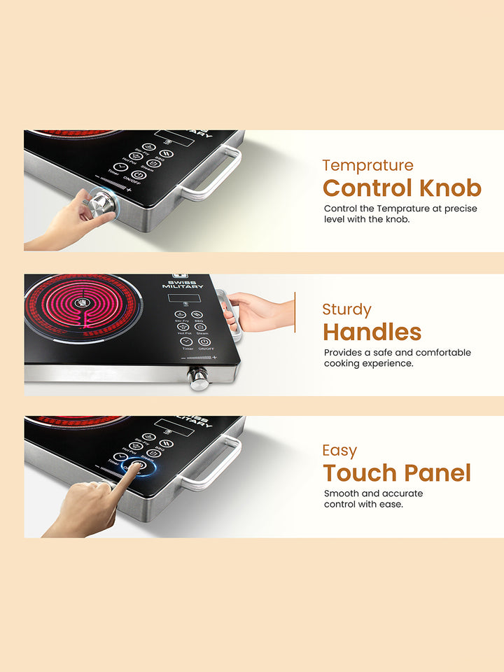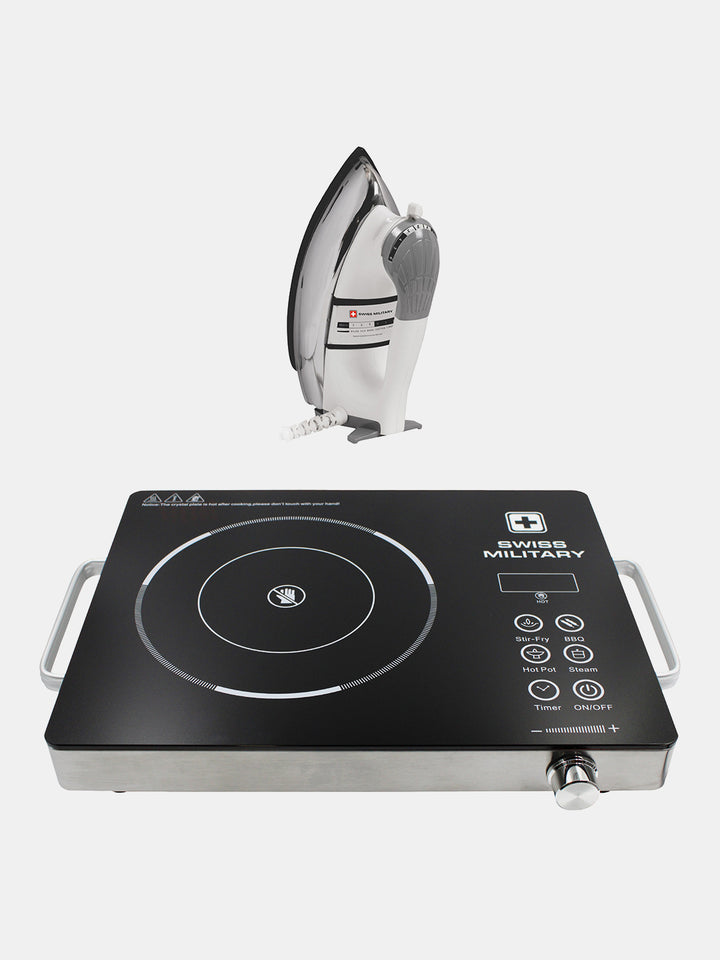 This Diwali, make your home festival-ready with the Swiss Military Diwali Combo — a powerful Infrared Induction Cooktop paired with a premium Dry Iron. Designed to simplify your celebrations, this combo brings efficiency, style, and convenience to your daily chores and festive preparations.