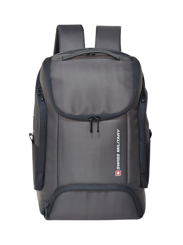 The Swiss Military Helium Laptop Backpack is a premium 21-liter backpack designed for modern professionals. Its standout feature is the 180° openable compartment, which provides effortless access to your laptop and tablet, ideal for business travelers users. The dual concealed USB C-Port offers on-the-go charging for both your phone and power bank, while the innovative bottle holder, anti-theft zippers, and hidden quick access pockets deliver top-tier security and convenience. Crafted from durable 100% polyester dobby, this backpack combines style with practicality. With a cushioned EVA back panel, adjustable shoulder straps, and leather handle, comfort is never compromised. Backed by an 18-month warranty, this bag ensures quality, functionality, and everyday usability.