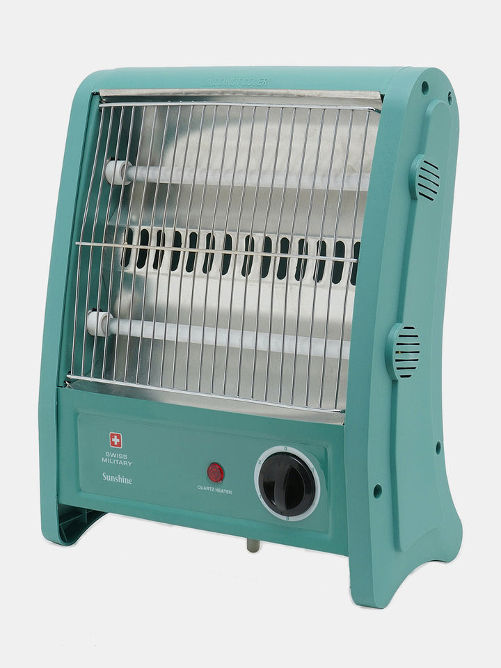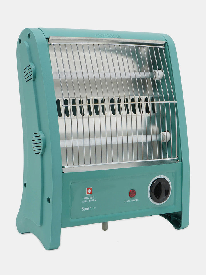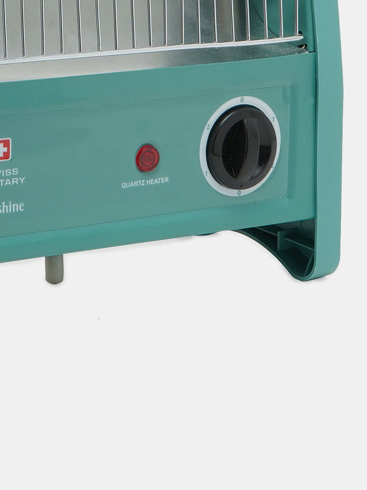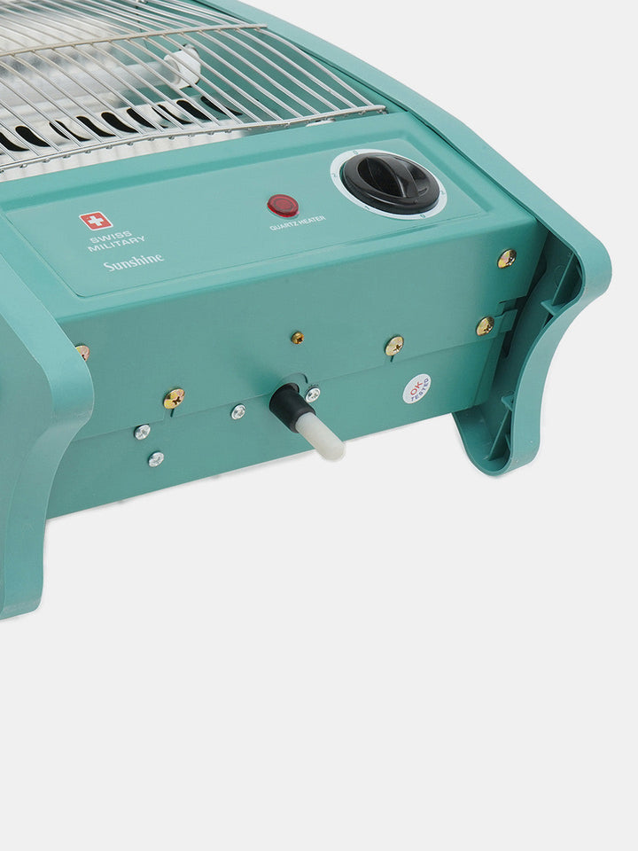 The Sunshine Quartz Heater By Swiss Military Is A Stylish, Compact, And Energy-Efficient Heating Solution Designed Specifically For Personal Use And Small Rooms. Powered By An 800-Watt Quartz Heating Element, This Heater Offers Two Adjustable Heat Settings To Suit Your Comfort Needs. Its Lightweight And Portable Design Makes It Easy To Move From Room To Room, While The Attractive Green Finish Adds A Touch Of Elegance To Any Space. Built-In Tilt-Over Protection And A Fire Safety Grid Ensure Enhanced Safety During Use. The Heater Also Features A Shock-Proof Body, Making It A Reliable Choice For Daily Use. With Simple Controls, Quiet Operation, And Low Power Consumption, The Sunshine Quartz Heater Is Ideal For Home Or Office Settings. Backed By A 1-Year Manufacturer Warranty.